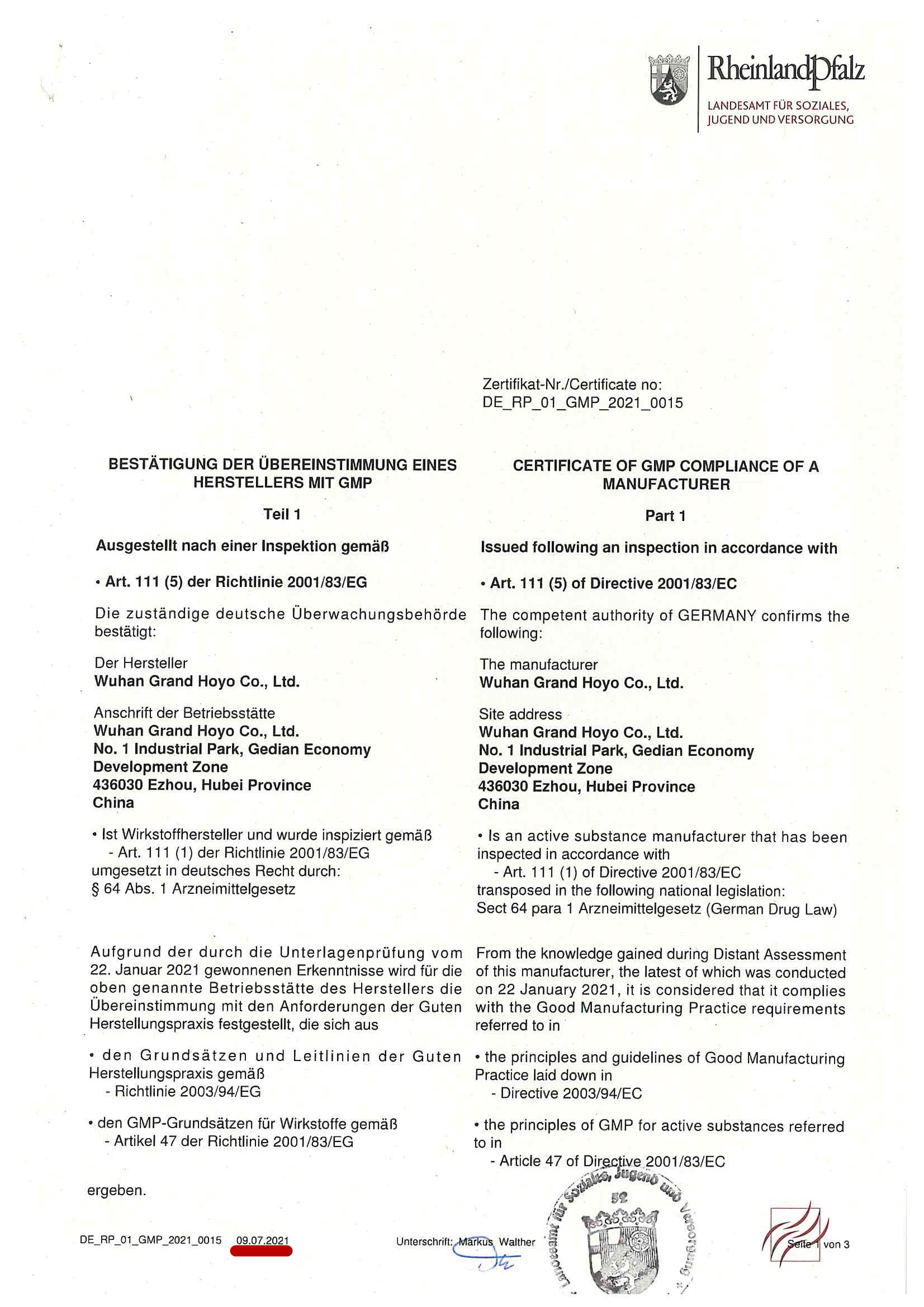 15th Floor, Office Building, Grand Pharmaceutical Technology Center, Wuhan City, Hubei Province, P.R. China